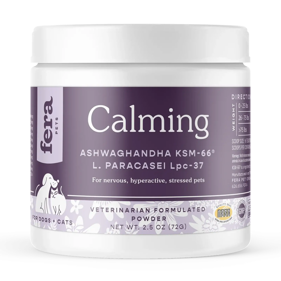 Our veterinarian-formulated Calming Support features effective ingredients to promote relaxation for nervous, hyperactive or stressed pets. This custom combination of herbs, amino acids, neurotransmitters and probiotics, were chosen for their synergy and demonstrated effectiveness for calmness. Within the gut, stress hormones such as cortisol can affect intestinal barrier integrity and immune signaling, and stress itself has been associated with changes in the composition of the gut microbiota. Featuring a clinically studied strain, L. Paracasei LPC-37®, that promotes relaxation by way of the Gut-Brain Axis, our calming support is specifically designed to link the intestinal tract and brain to reduce stress.