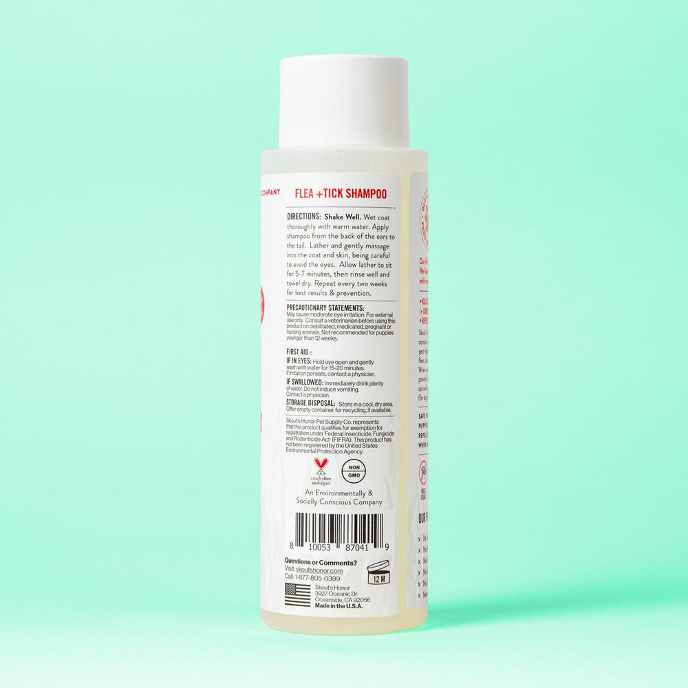 Our Max Strength Flea+Tick Shampoo contains some of nature's most potent pest-fighting ingredients to eliminate fleas & ticks and repel mosquitos.